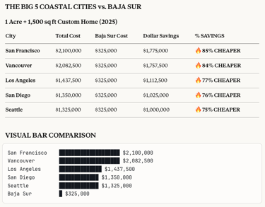 "Own Coastal Land in Baja California Sur At 1/5 the Cost of California."